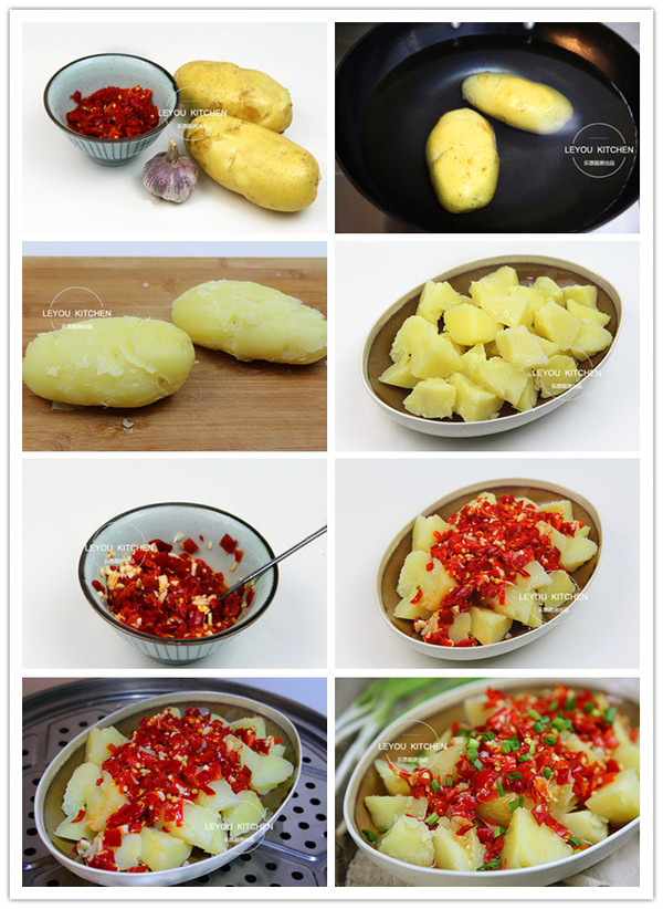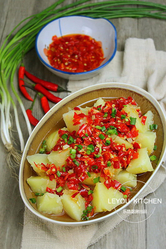 第六步:把剁椒放到土豆上,如图。