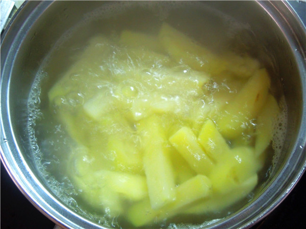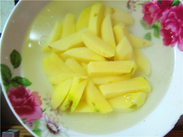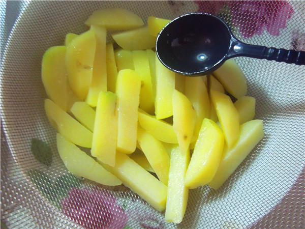 土豆去皮,切成手指粗条(我自己觉得还可以切得再细一点)