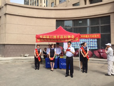 6月16日上午8时58分,作为长春市内第四家普惠型特色网点,交通银行长春新星宇观塘支行携手新星宇赢时物业以“防范电信网络新型违法犯罪”为主题,走进社区开展“普及金融知识万里行”活动,为社区居民讲解新型网络范罪相关知识,得到广大业主们一致好评。